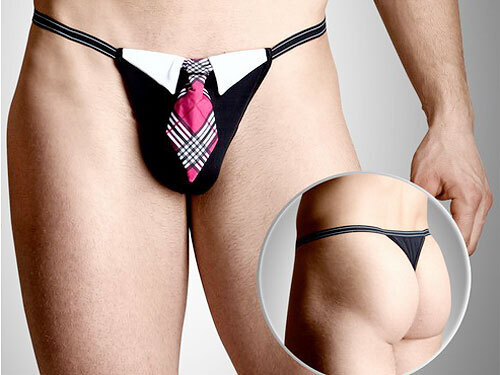 Мужские стринги 'SoftLine Collection', черные с галстуком, S/L, полиэстер/спандекс