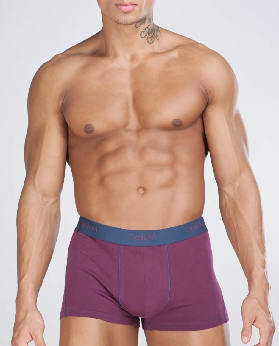 Мужские трусы-боксеры с контрастной отстрочкой, размер L, сливовый, 45% модал/хлопок