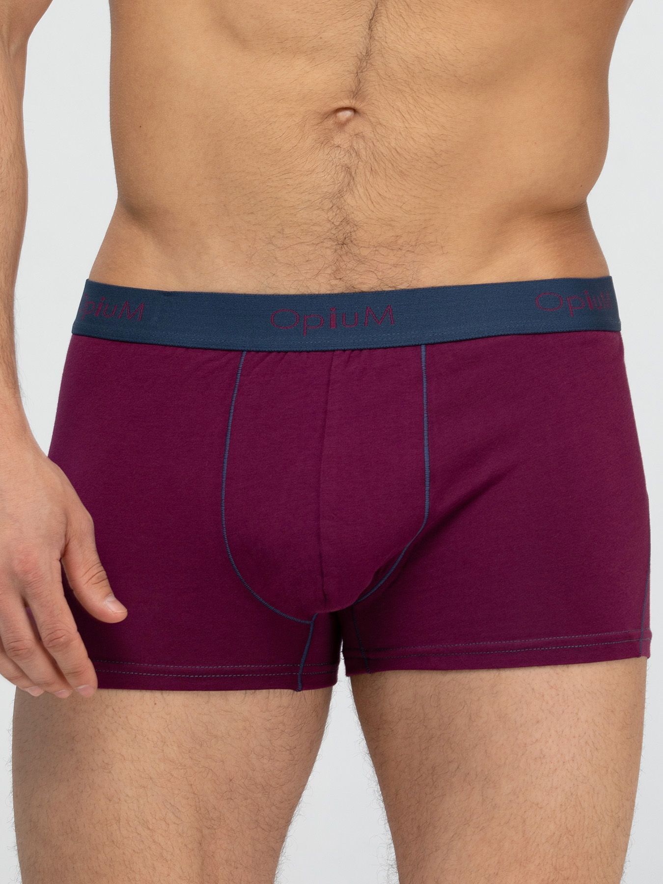 Трусы-боксеры мужские с контрастной отстрочкой, модал/хлопок, размер XXXL, цвет сливовый, Opium, Италия