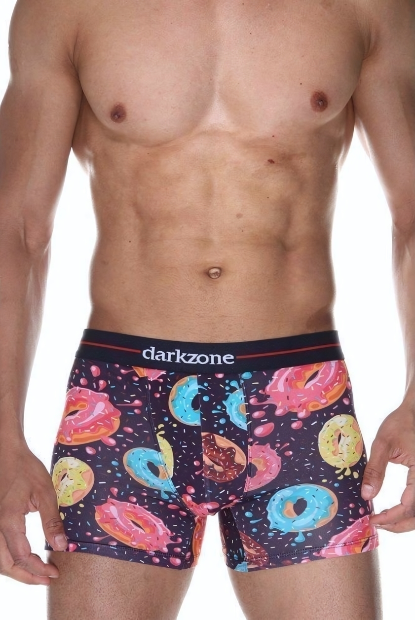 Трусы-боксеры мужские комфортные с принтом пончиков, фиолетовые, размер s, 95% хлопок