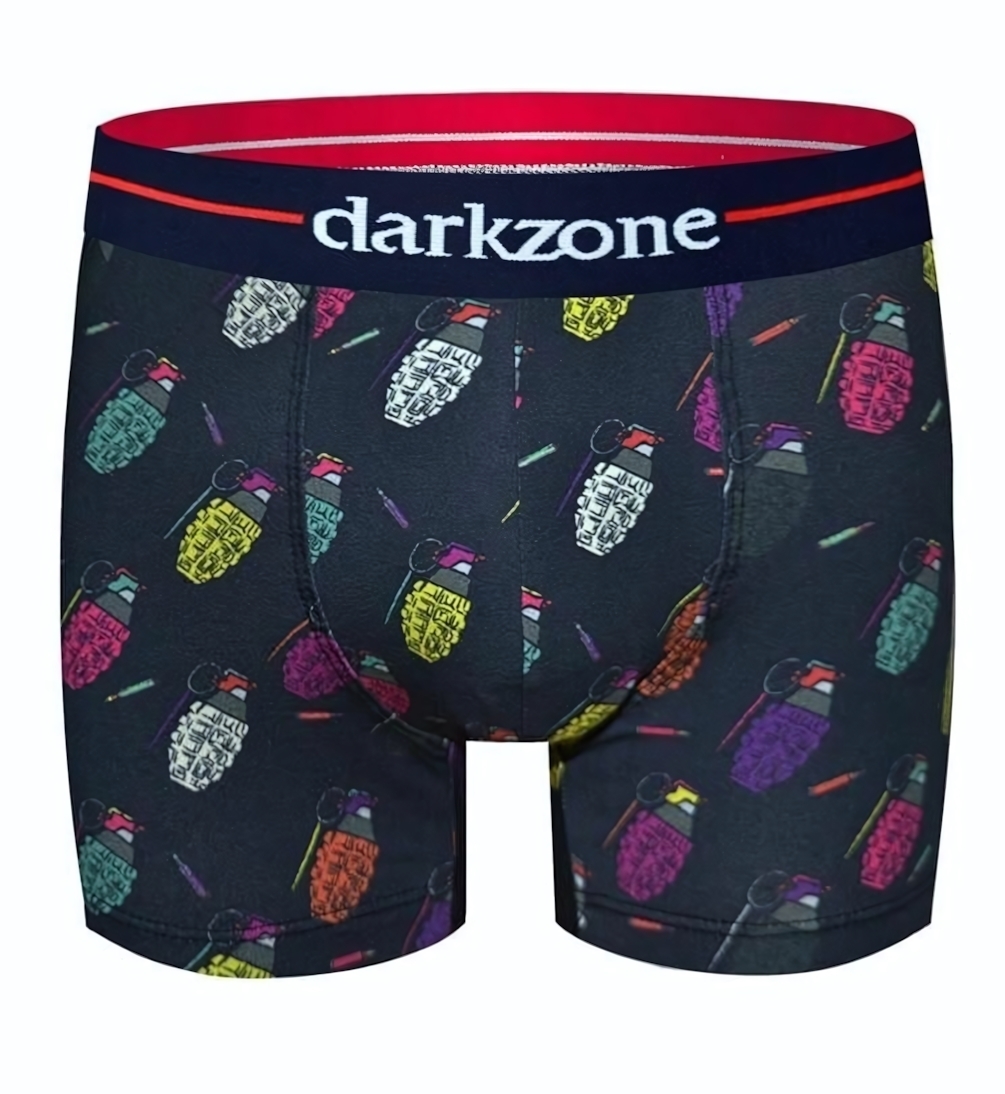 Представляем трусы-боксеры 'Darkzone' с ярким принтом в виде гранат — идеальное сочетание удобства и оригинального дизайна. Стильный темно-синий цвет с красочным рисунком подчеркнет вашу индивидуальность.