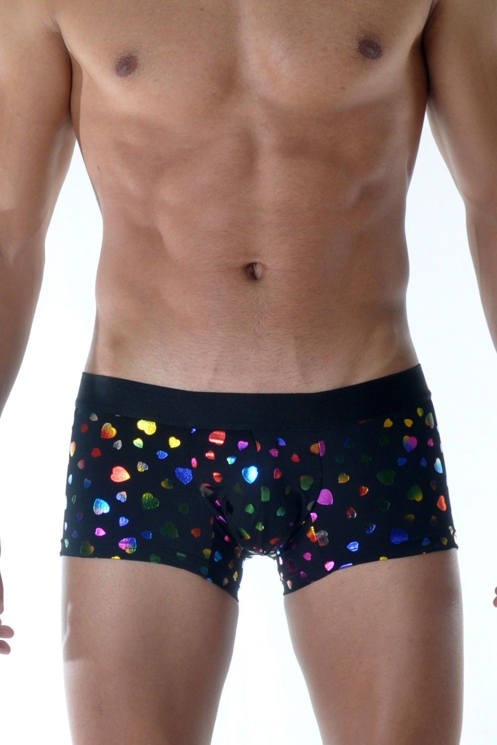 Эти мужские трусы-боксеры сочетают дерзкий дизайн и комфортную посадку. Яркие голографические сердца на черном фоне создают выразительный акцент, оставаясь практичными в повседневной носке.