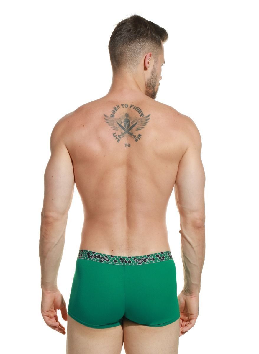 Зеленый цвет модели сочетается с любым стилем одежды, а классическая длина боксеров подходит для спорта, работы и отдыха. Размер M соответствует обхвату бедер 93-97 см — используйте таблицу размеров из фотографий товара для точного выбора.