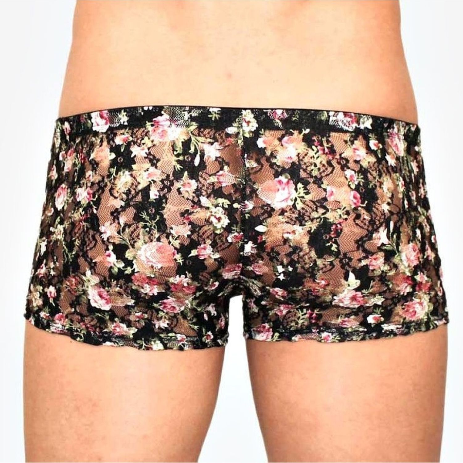 Мужские трусы-боксеры Romeo Rossi, сетчатые, дышащие, черные с цветочным узором, размер L