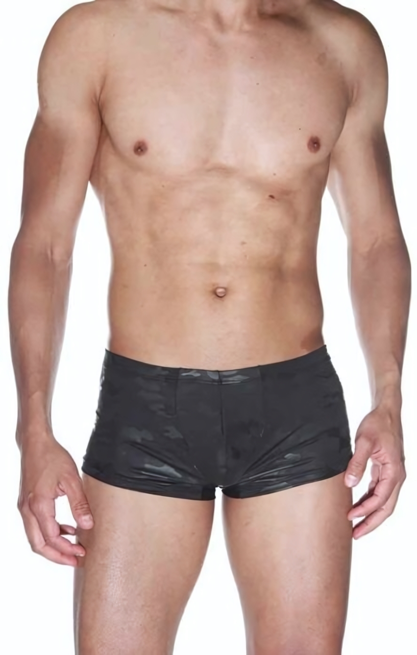 Черные трусы-хипсы с камуфляжным принтом от La Blinque — это идеальное сочетание элегантности и удобства. Специальный крой обеспечивает низкую посадку, подчеркивая мужественность и создавая эффектный силуэт.