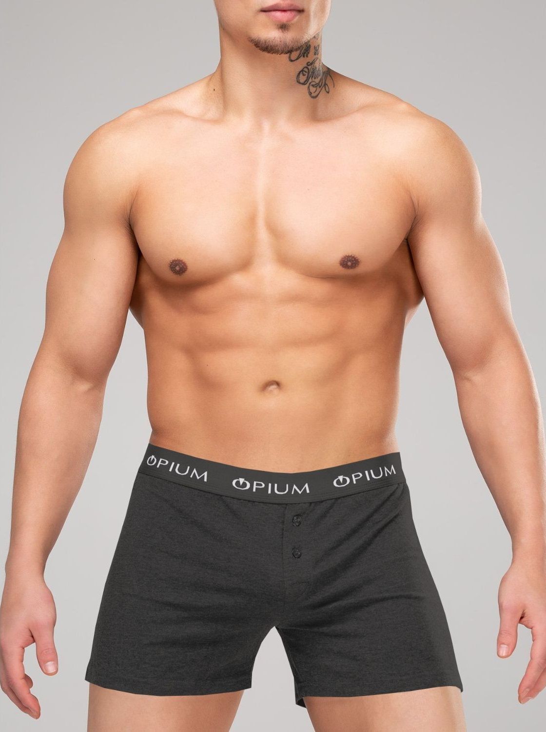 Мужские трусы-шорты черного цвета — это идеальный выбор для тех, кто ценит комфорт и качество. Изготовленные из 95% хлопка и 5% эластана, они обеспечивают отличную посадку и свободу движений. Эти трусы идеально подходят для повседневной носки, а также для занятий спортом. Фирменная резинка с логотипом OPIUM добавляет стильный акцент, а две пуговицы на передней части придают изделию классический вид.