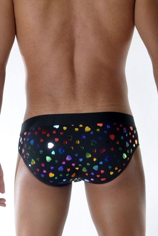 Низкий крой модели позволяет чувствовать себя комфортно в любой ситуации. Разноцветные сердца не просто украшение – они выполнены из специального голографического материала, который переливается при попадании света.