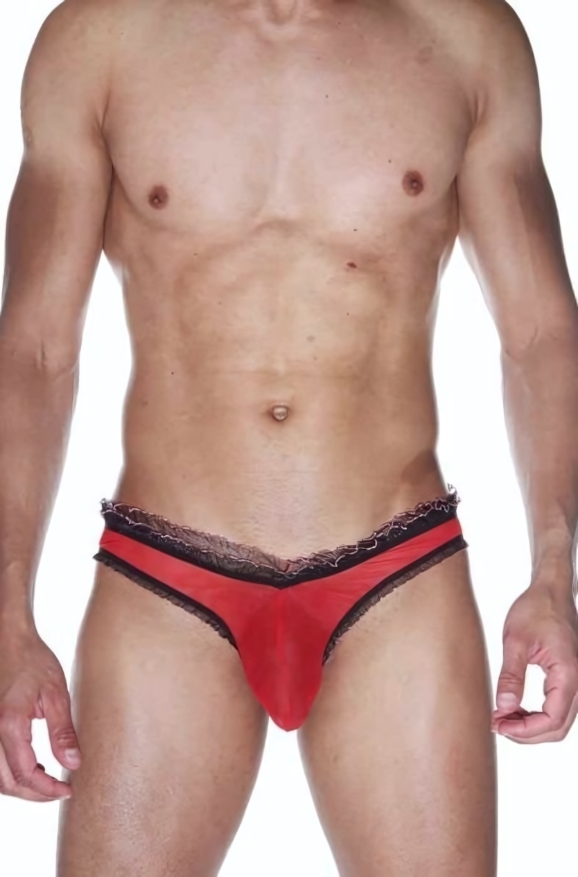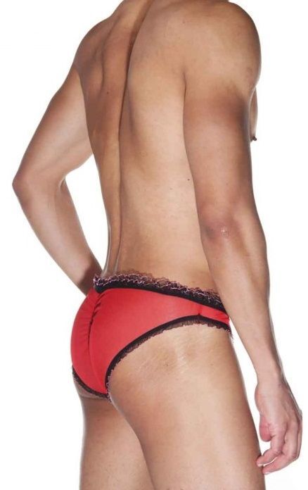 Трусы-слипы мужские с рюшами, размер S-M, красный/черный, эластан