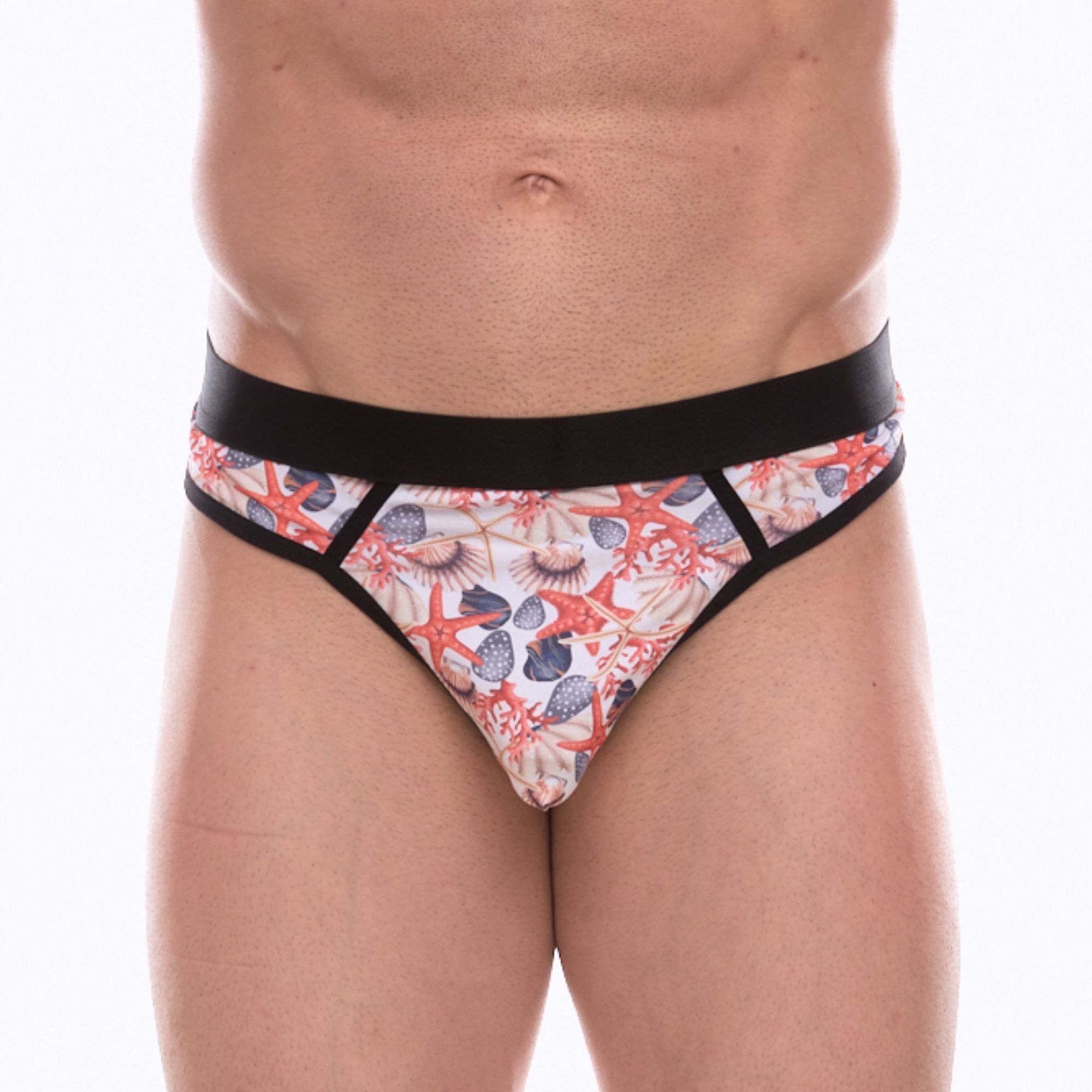 Удобные мужские трусы-стринги с ярким принтом ракушек