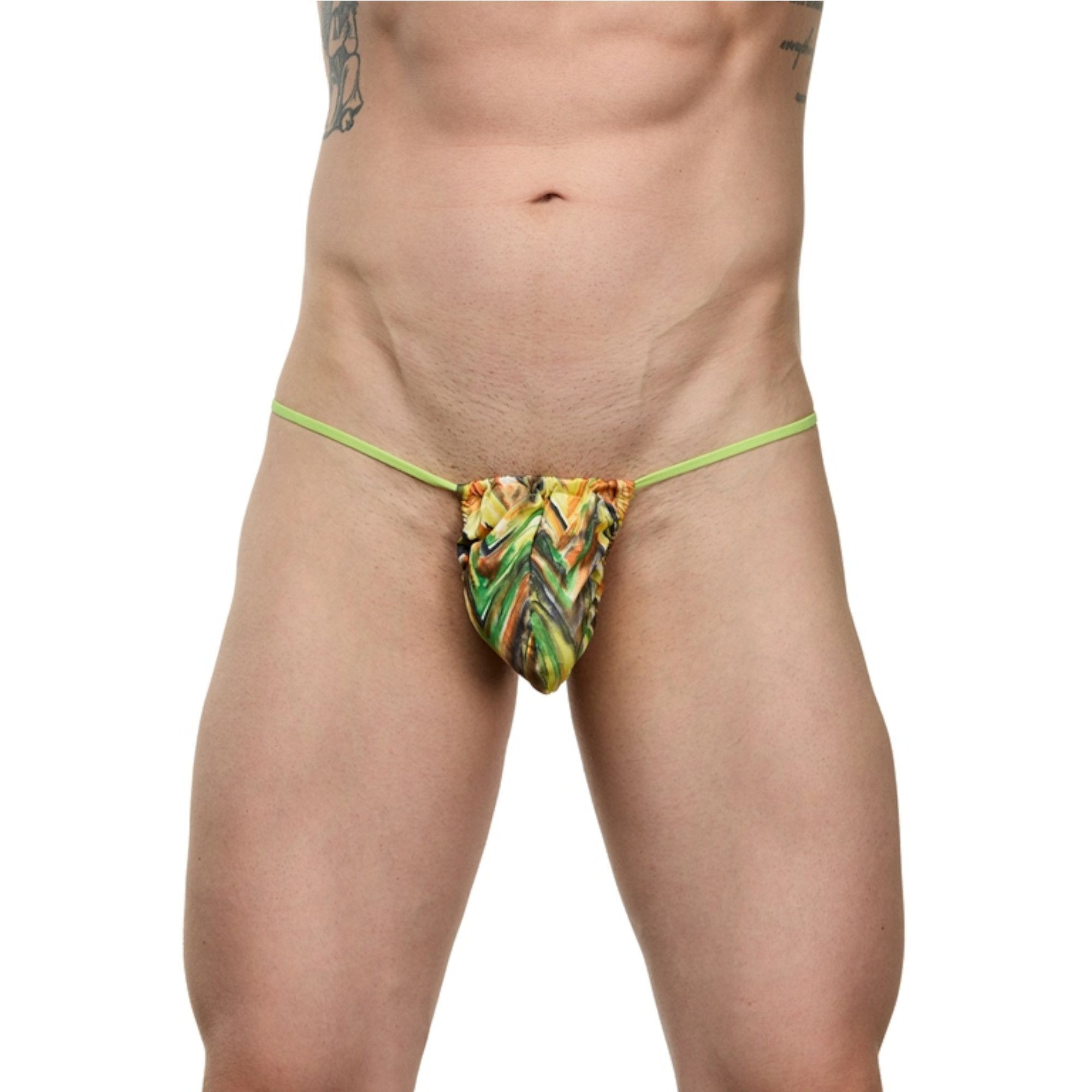 Эротичные мужские трусы-стринги с зигзагообразным принтом