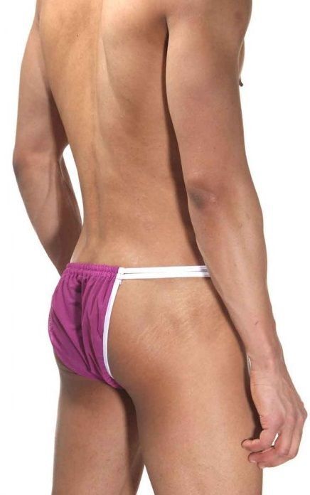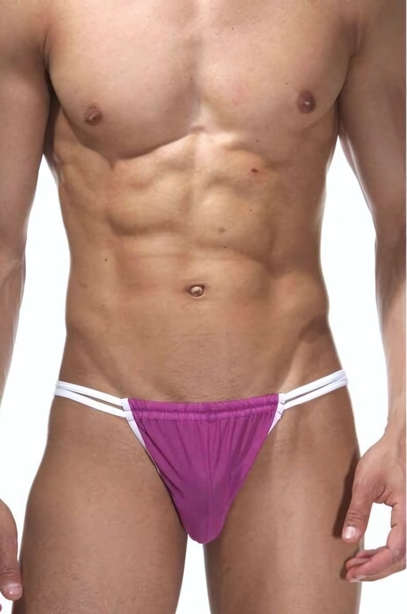 Мужские трусы-танга с двойной резинкой, лиловые, размер L-XL, полиэстер/эластан