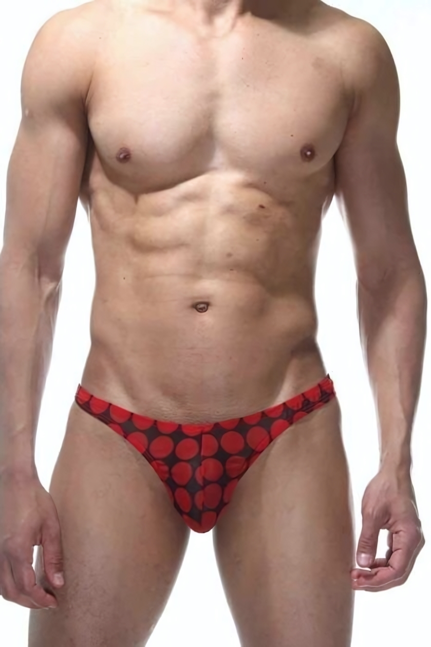 Мужские трусы-тонга 'La Blinque', крупный горох, красный/черный, размер S-M, полиэстер/эластан