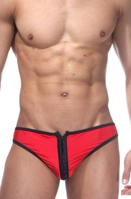 Трусы-тонги мужские с застежкой спереди, размер L-XL, красный/черный, полиамид/эластан