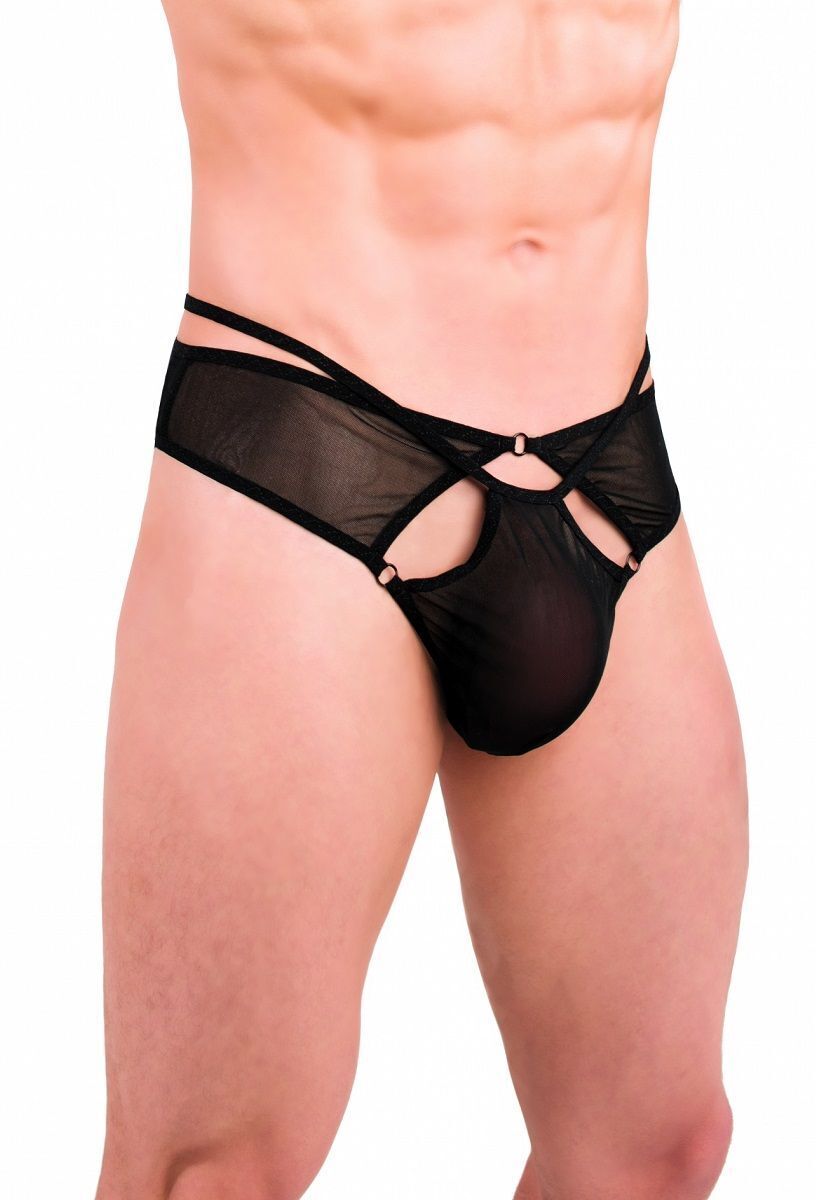 Эротичные мужские тюлевые трусы с колечками