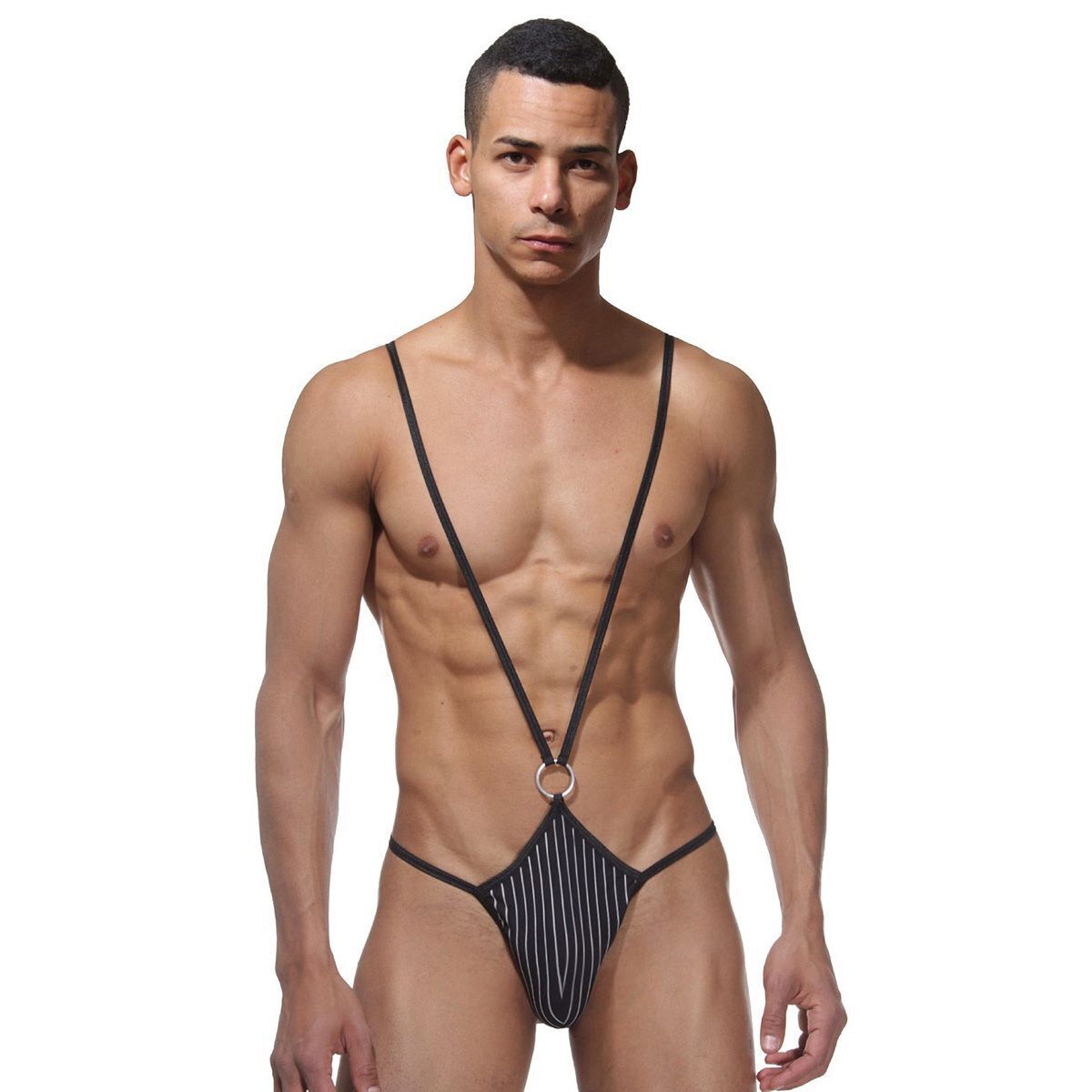 Смелый акцент на мужской фигуре с открытым дизайном и украшением-кольцом. Идеально для интимных экспериментов и особых моментов.