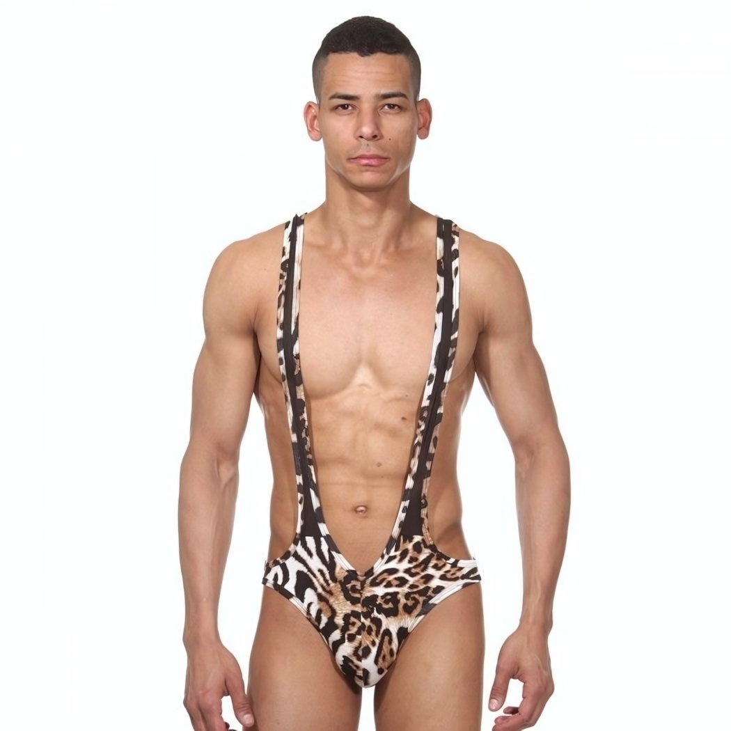 Эротичное мужское боди с эффектным анималистическим принтом сочетает смелый дизайн и комфортную посадку. Состав из эластичного полиэстера с добавлением эластана обеспечивает идеальное облегание и свободу движений.