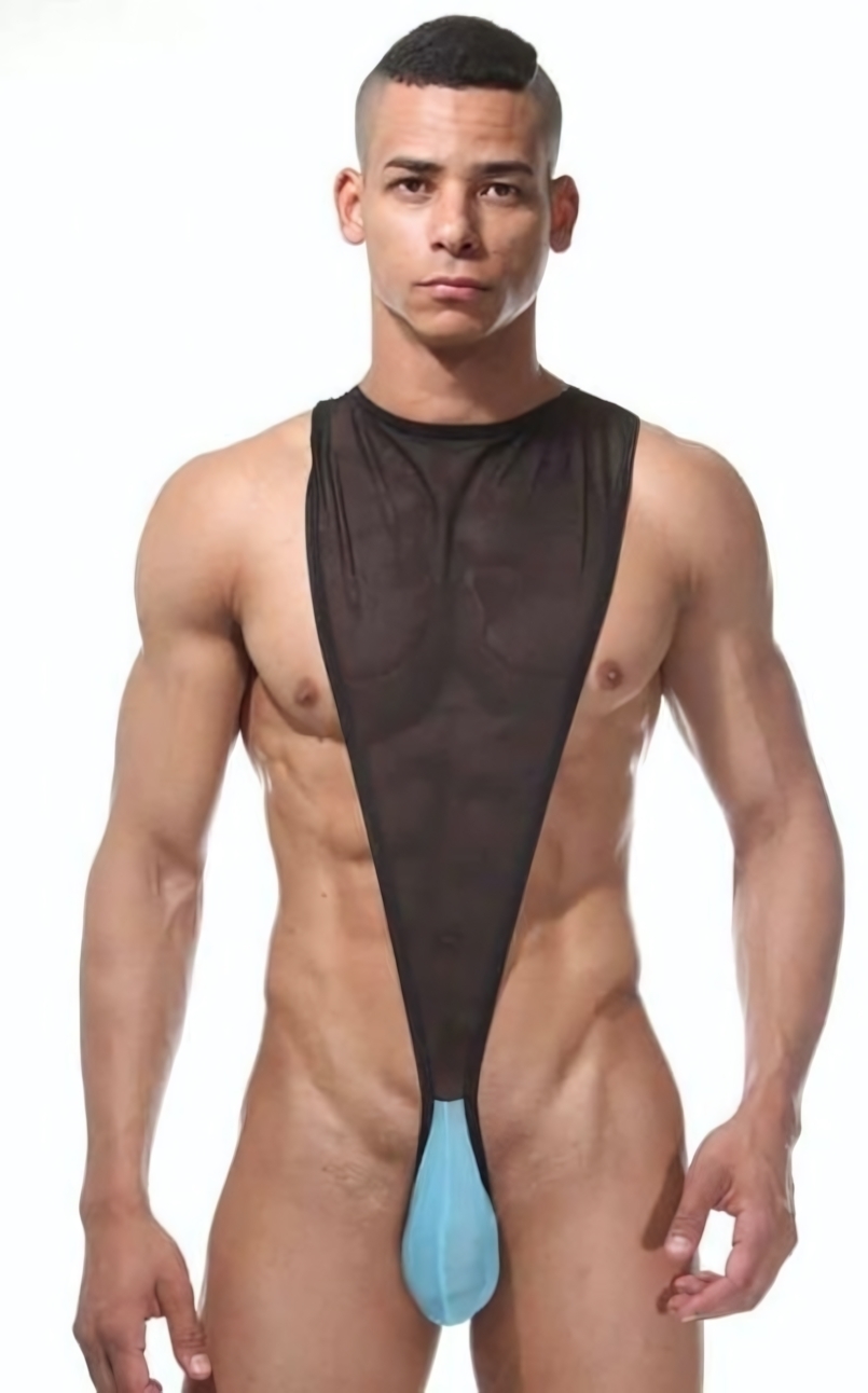 Мужское боди полупрозрачное 'La Blinque', размер S-M, черный с голубым