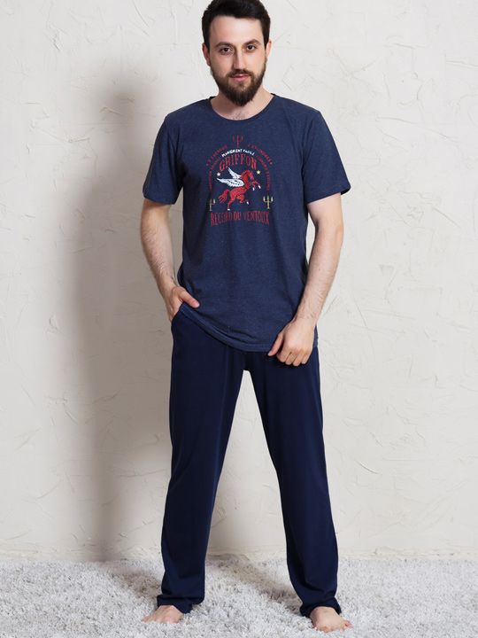 Темно-синий цвет делает комплект универсальным и практичным. Он подойдёт в качестве домашней одежды или удобной пижамы, а также станет удачным выбором для подарка мужчине, который ценит комфорт и качественные материалы.