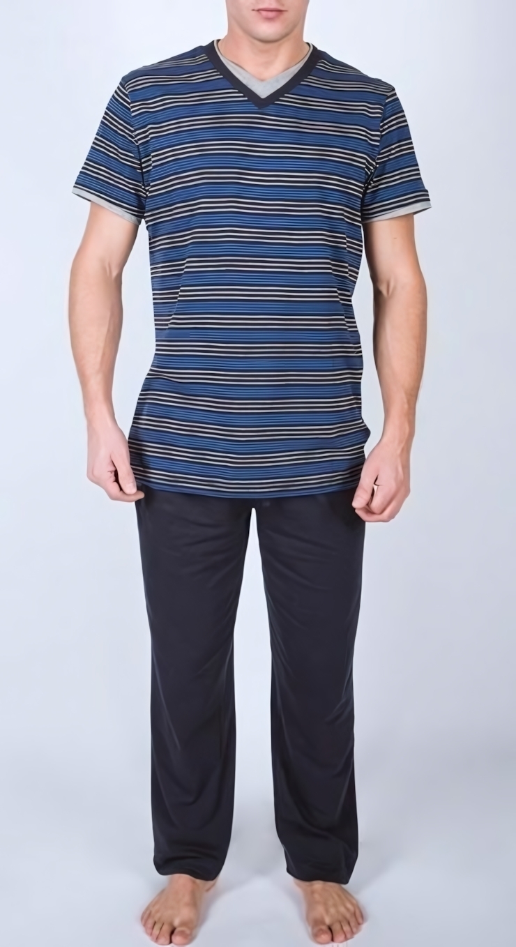 Откройте для себя идеальный комфорт с мужским хлопковым пижамным комплектом, который станет вашим незаменимым спутником для отдыха и домашнего времяпрепровождения. Этот комплект, состоящий из футболки и брюк, обеспечивает не только стильный внешний вид, но и максимальное удобство благодаря высококачественному материалу.