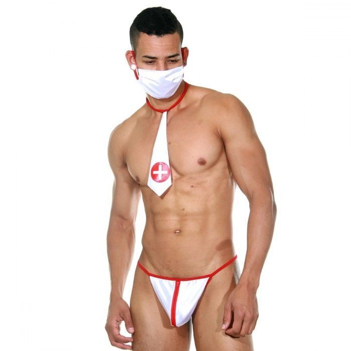 Мужской игровой костюм «Доктор»: 3 предмета, размер L-XL, белый с красным, полиэстер/эластан