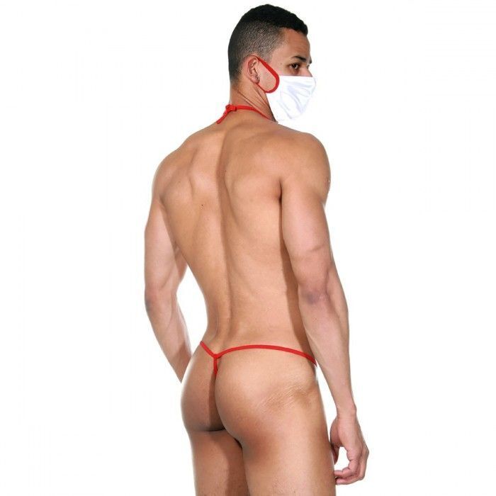 Сочетание белого фона с алыми акцентами создает визуальный контраст, подчеркивающий рельеф тела. Медицинская символика в виде аппликаций добавляет реалистичности ролевой игре, сохраняя при этом эстетическую привлекательность.