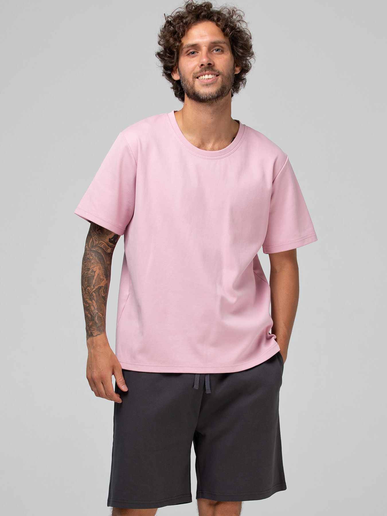Этот стильный комплект из футболки и шорт станет идеальным выбором для расслабленного времяпровождения дома или на отдыхе. Выполненный из плотного хлопкового трикотажа, он обеспечивает максимальный комфорт и свободу движений. Спокойные, приглушенные оттенки, такие как нежно-розовый, способствуют созданию уютной атмосферы.