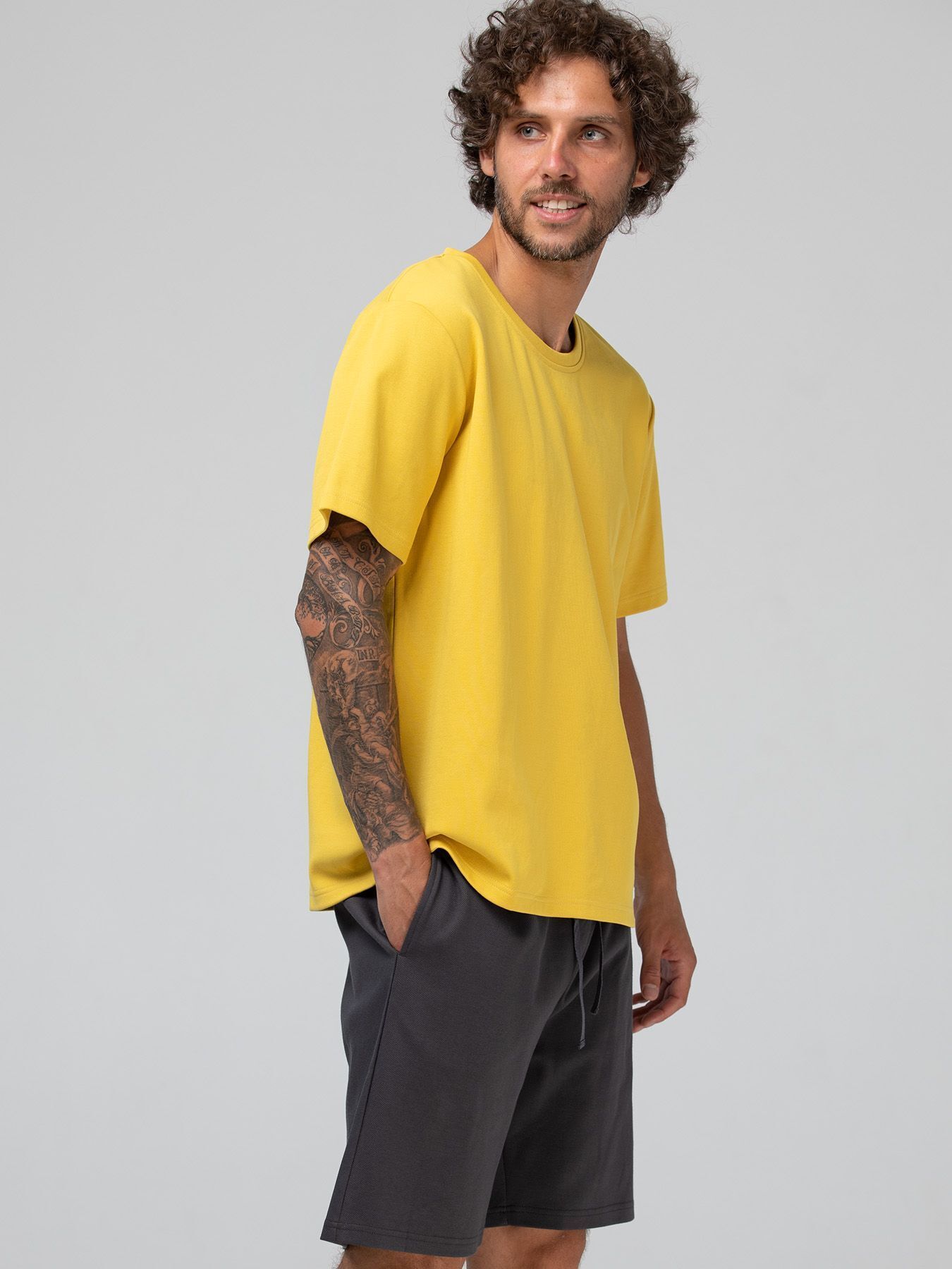 Мужской костюм для дома, футболка и шорты, S, желтый, хлопок 83%