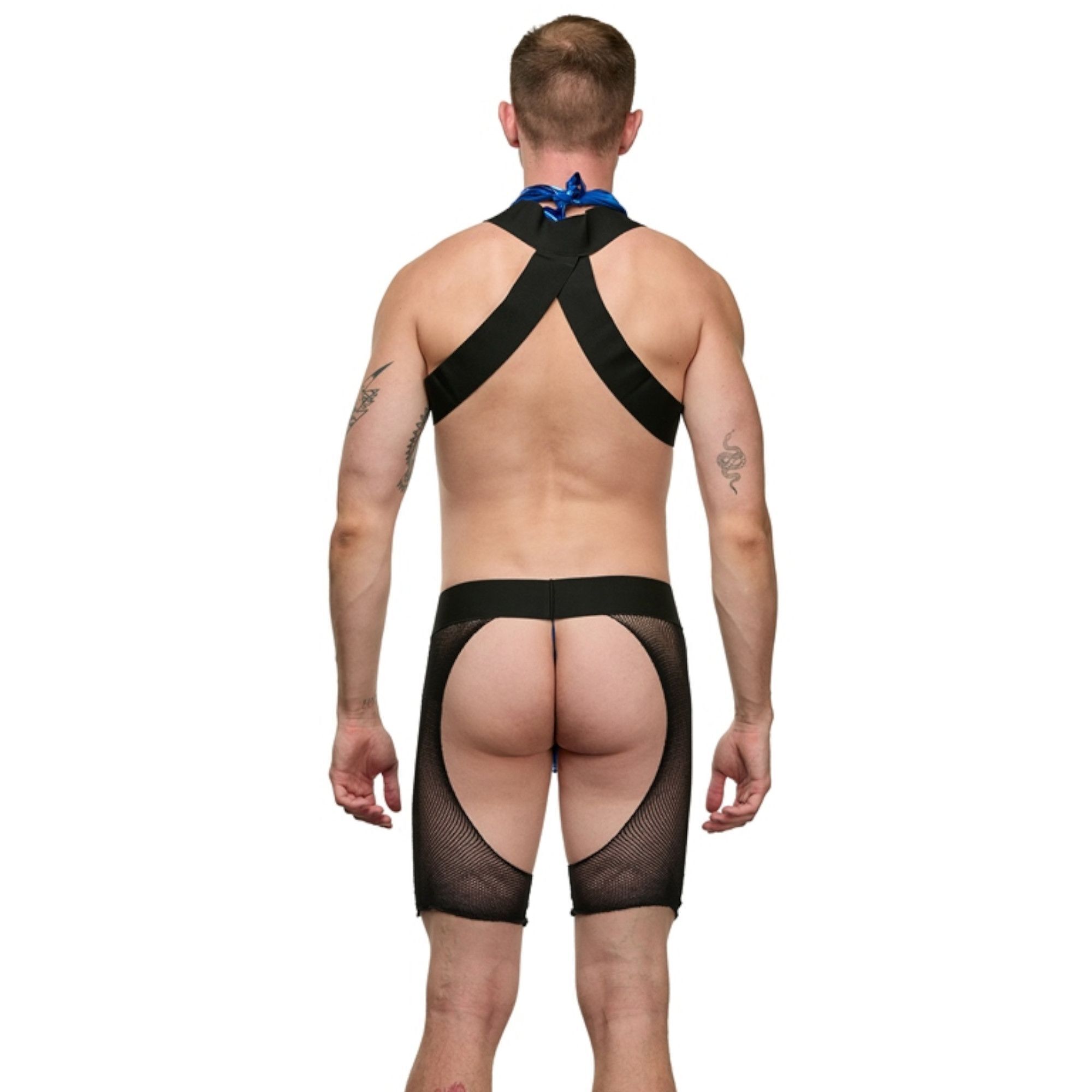 Погрузитесь в мир страсти и приключений с мужским костюмом «Ковбой». Этот стильный и откровенный комплект, состоящий из трусов, упряжи и шейного платка, создан для того, чтобы добавить яркие эмоции в ваши интимные моменты. Костюм выполнен в черном цвете с синими акцентами, что придаёт ему особую привлекательность и сексуальность.