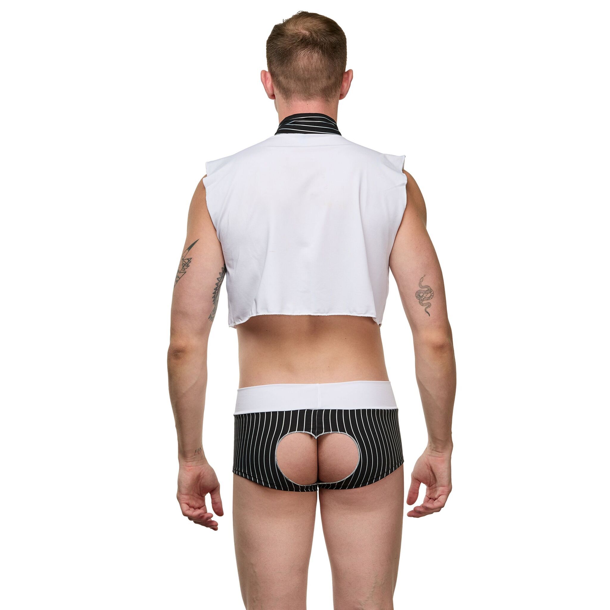 Костюм доступен в размере S-M, что делает его подходящим для большинства мужчин. Цветовая гамма черного с белым добавляет элегантности и стиля. Этот наряд станет отличным выбором для тех, кто ценит качество и оригинальность в одежде.