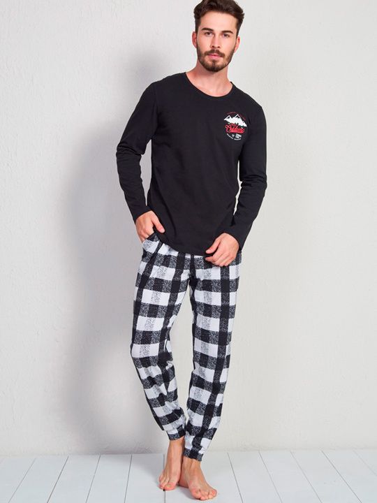 Стильное сочетание однотонного верха и клетчатых брюк делает комплект универсальным вариантом домашней одежды для мужчин, которым важно сочетание качества, удобства и аккуратного внешнего вида.