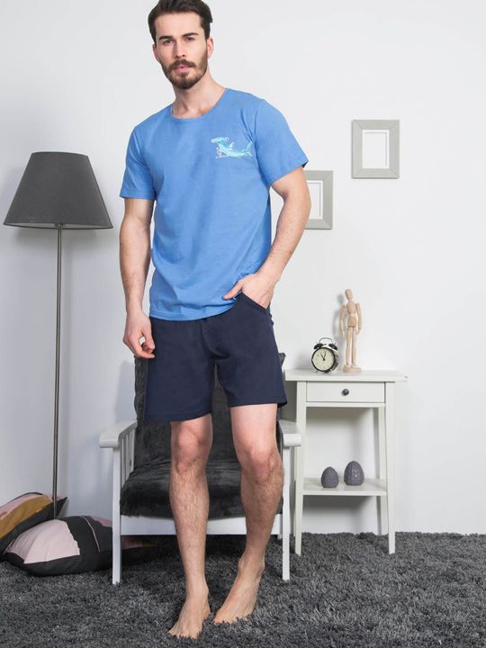 Комплект подходит для использования как домашняя одежда и как пижама. Короткие рукава и прямой крой делают модель особенно комфортной в теплое время года или в отапливаемых помещениях. Шорты дополнены карманами, что добавляет практичности — можно держать под рукой телефон или другие мелочи.