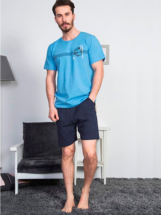Мужской комплект Vienetta из 100% хлопка создан для тех, кто ценит удобство и натуральные материалы. Легкая футболка и практичные шорты обеспечивают свободу движений и приятные ощущения на коже, помогая полностью расслабиться после рабочего дня или наслаждаться спокойным утром дома.