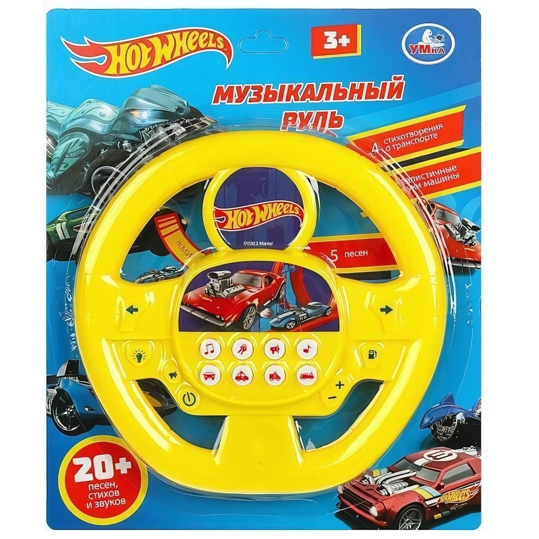 Музыкальный руль «Hot Wheels» ТМ «УМка» предназначен для детей от 3 лет, которые любят играть в гонки и управлять машинками. Этот яркий и реалистичный инструмент позволяет малышу имитировать управление автомобилем, нажимая на кнопки с различными звуками, музыкой и стихами, что способствует развитию моторики, воображения и музыкального слуха.
