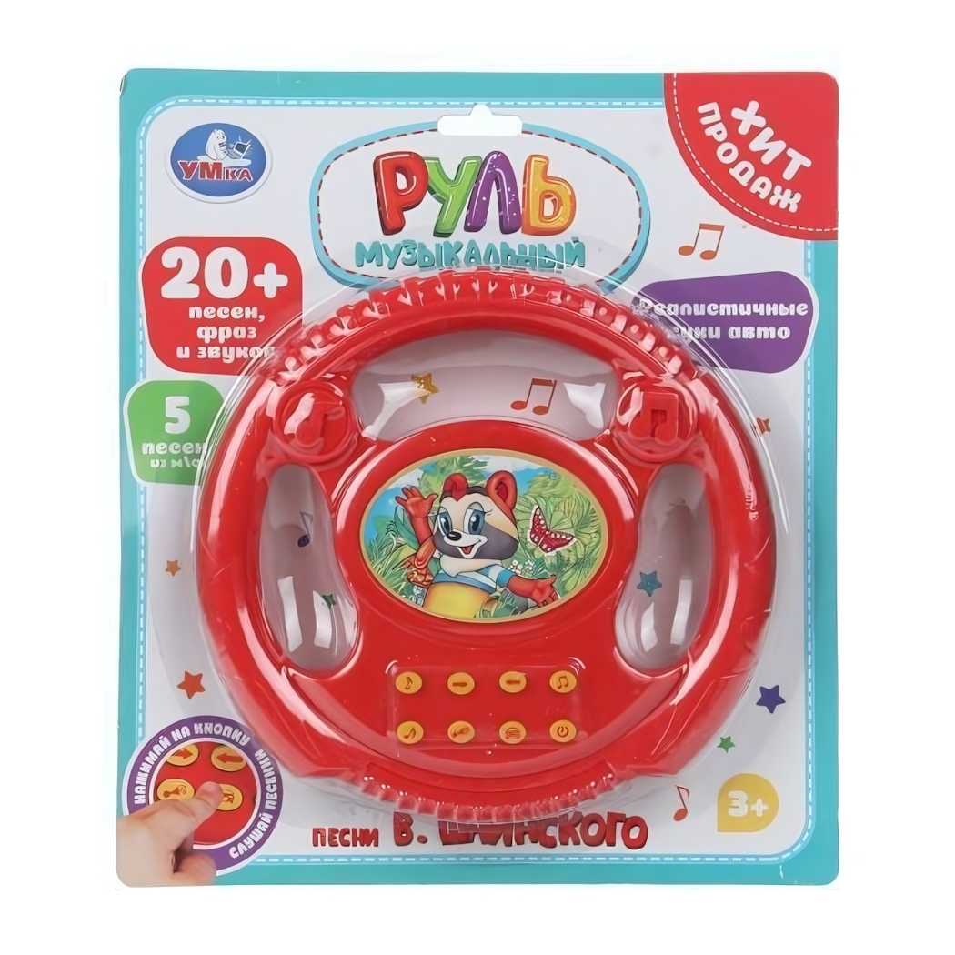 Этот музыкальный руль станет настоящим центром развлечений и развития для малышей от 3 лет. Оснащён 20+ песнями, в том числе из популярных мультфильмов В. Шаинского, который поможет развивать музыкальный слух, звуковое восприятие и память. Реалистичные звуки автомобиля и яркий дизайн с изображением мультперсонажа делают игру ещё более увлекательной.