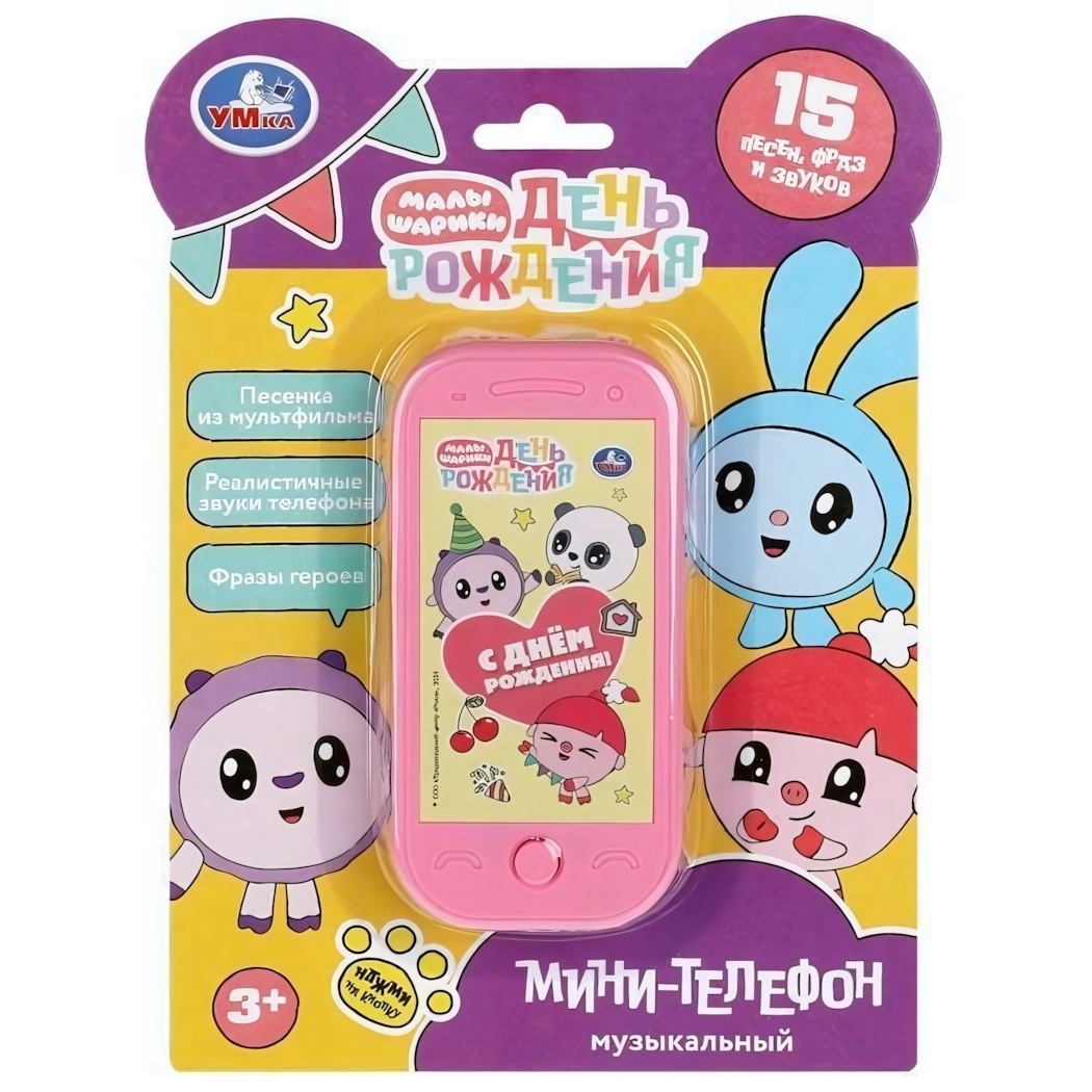 Основная выгода: этот яркий и компактный музыкальный телефончик подарит малышу радость и развитие слуха, памяти и моторики. Его удобный размер и яркий дизайн делают игрушку идеальным развлечением для детей от 3 лет, позволяя им весело слушать любимые песни и звуки мультфильма «Малышарики».