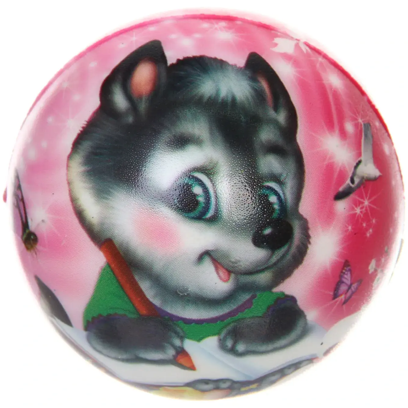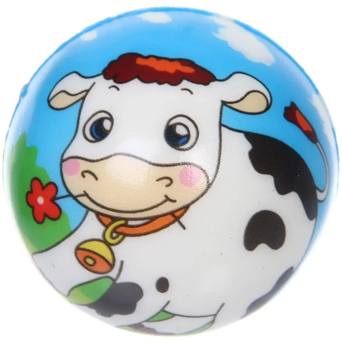 Поставляется в ассортименте из нескольких вариантов с различными принтами (пингвины, коровы, драконы и другие персонажи). Отгружается один мяч, конкретный дизайн определяется случайным образом.