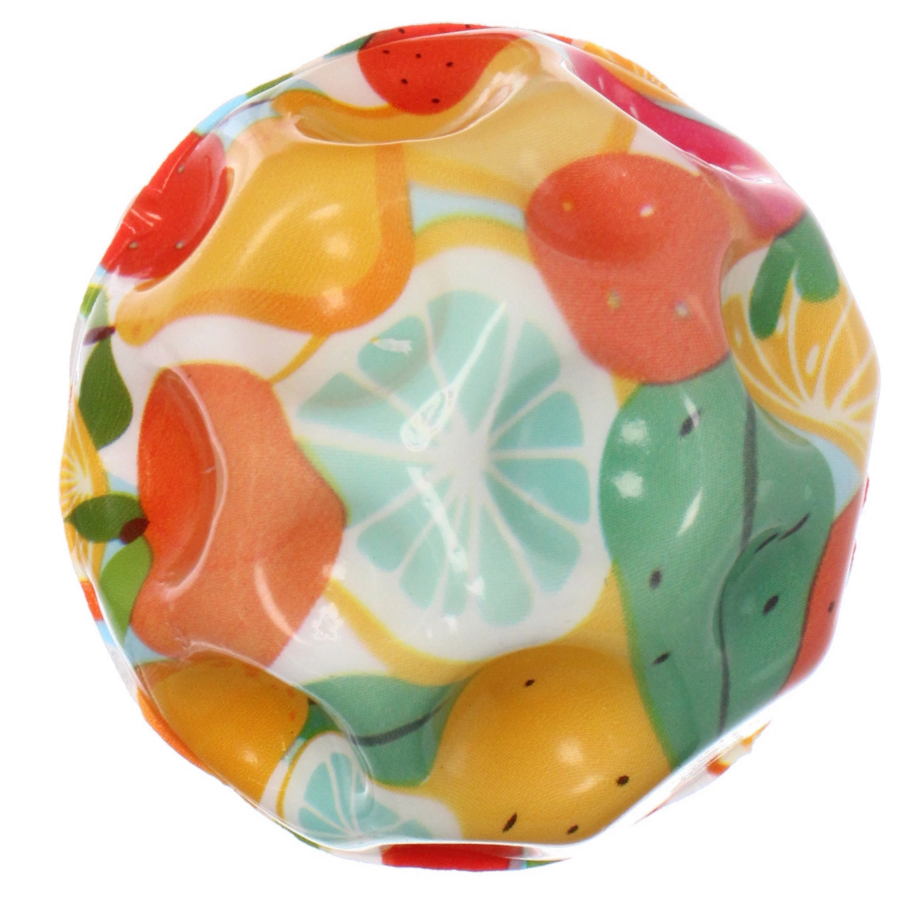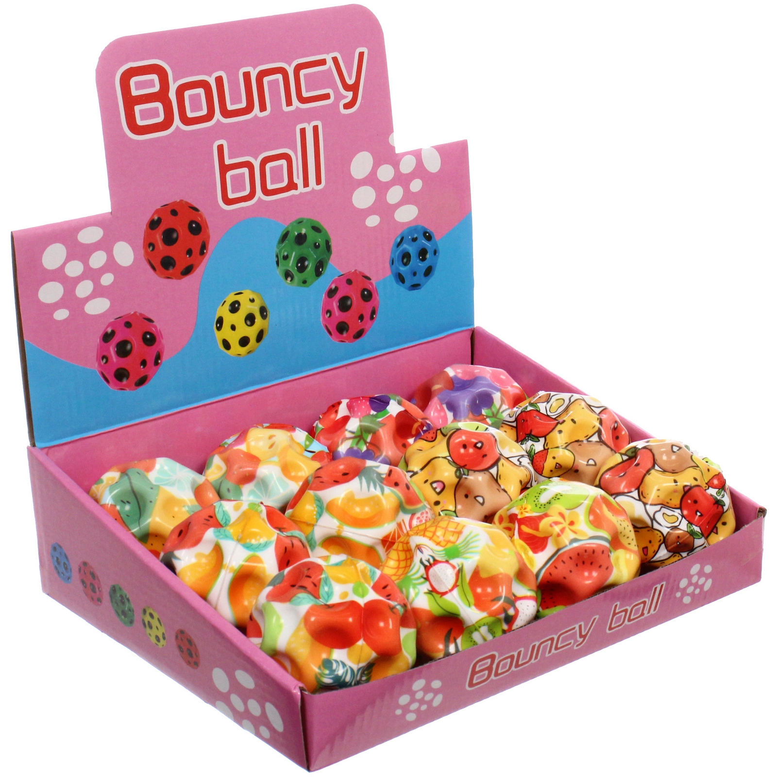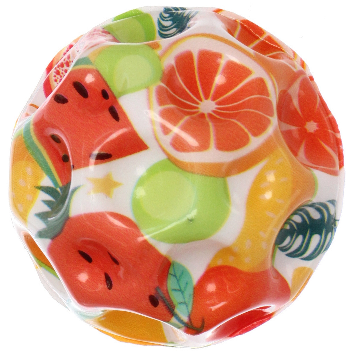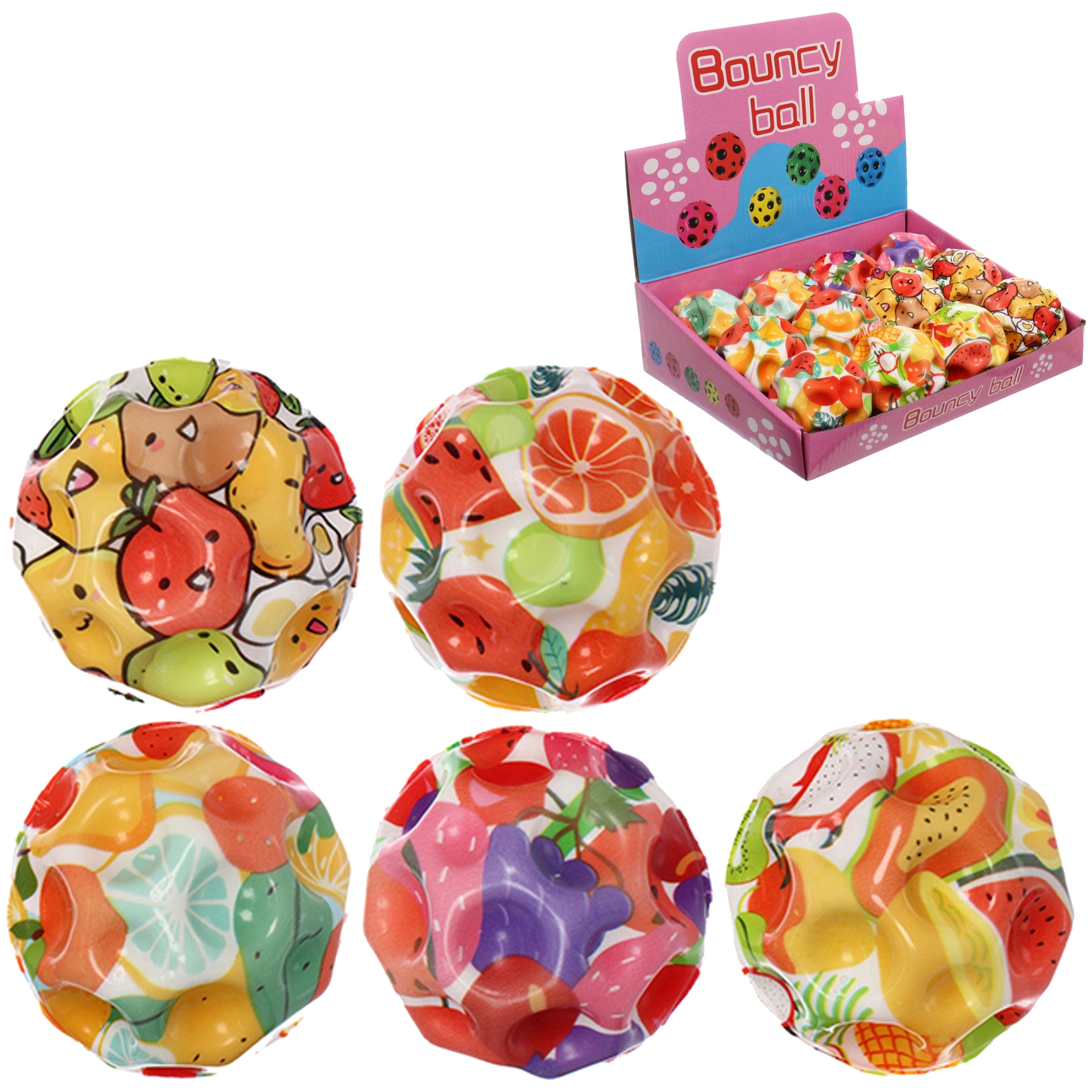 Этот компактный и прыгучий мяч станет любимым спутником как для детей, так и для взрослых. Благодаря уникальной бугристой поверхности, он не только отлично пружинит от любых покрытий, но и обеспечивает приятный массажный эффект для ладоней. Прозрачная внешняя оболочка скрывает под собой сочные и аппетитные рисунки фруктов, ягод и сладостей с забавными мультяшными лицами, которые мгновенно привлекают внимание и вызывают положительные эмоции.