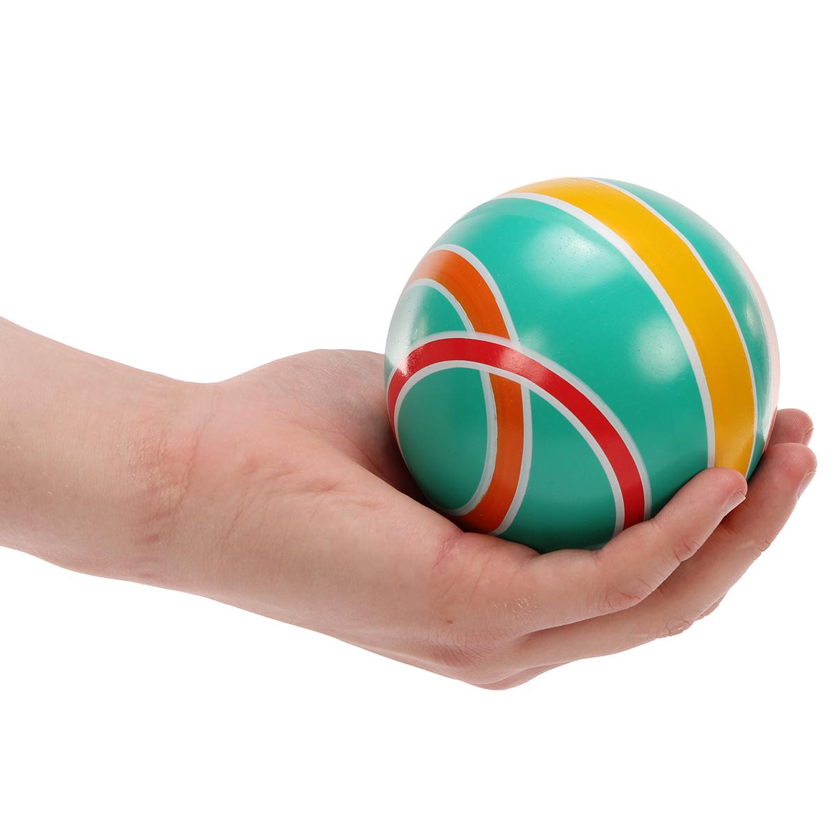 Размер мяча составляет 100 мм в диаметре, что делает его удобным для маленьких рук. Он выполнен из качественной резины, что гарантирует его прочность и долговечность. Мяч подходит для использования как в помещении, так и на улице, что делает его универсальным аксессуаром для активного отдыха.