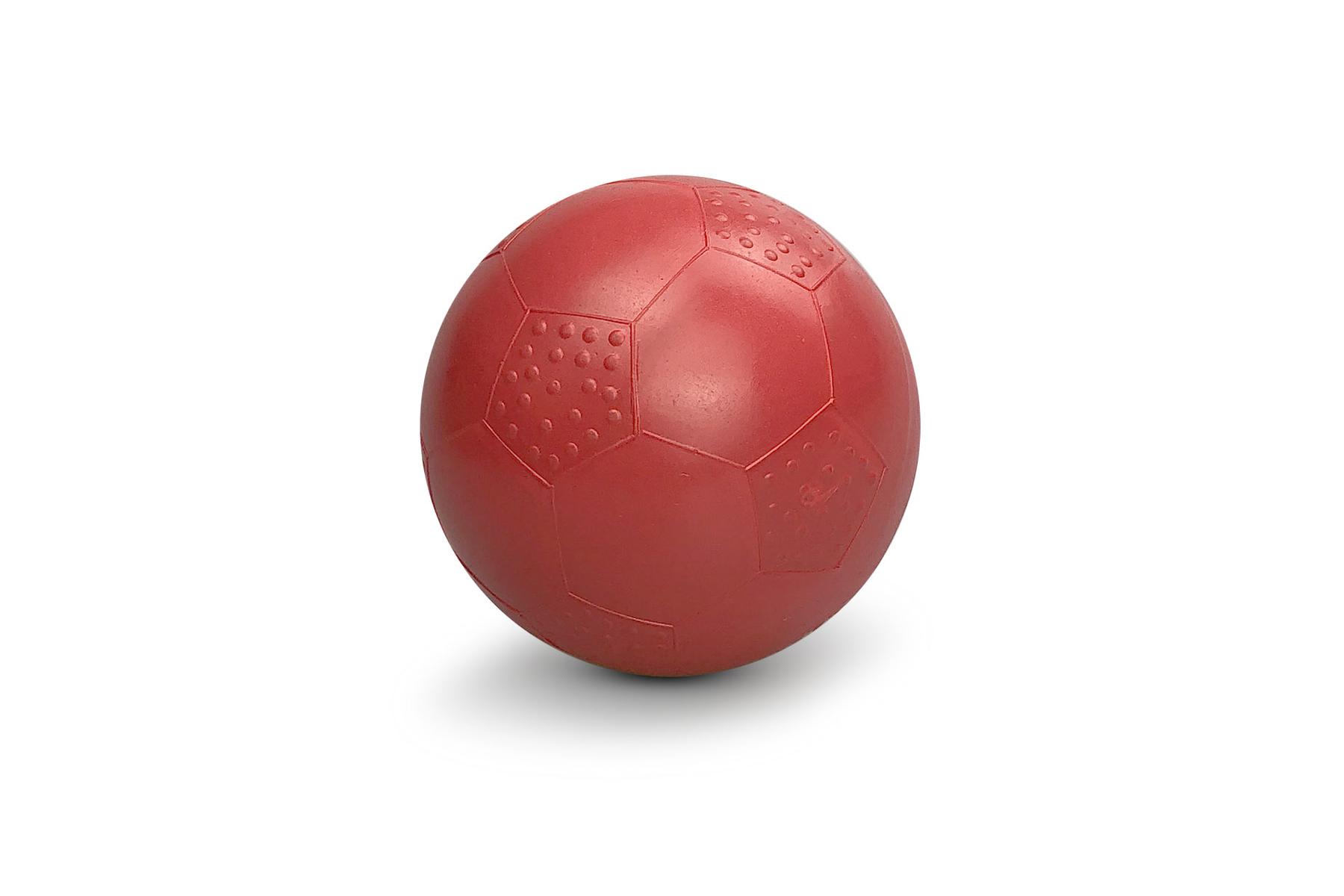 Мяч изготовлен из прочной резины, устойчивой к износу. Фактурная поверхность обеспечивает хорошее сцепление с руками, предотвращая скольжение. Легко моется и чистится, что обеспечивает гигиеничность использования.