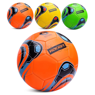 Окружность мяча: 68-70 см. Материалы: полиуретан (внешний слой), текстиль (внутренняя основа). На поверхность нанесен графический узор с использованием нескольких цветов, а также надпись «ROCKET» и логотип размера. Мяч поставляется в одном экземпляре, цветовое исполнение представлено в ассортименте (оранжевый, желтый, светло-зеленый и другие варианты рисунка).