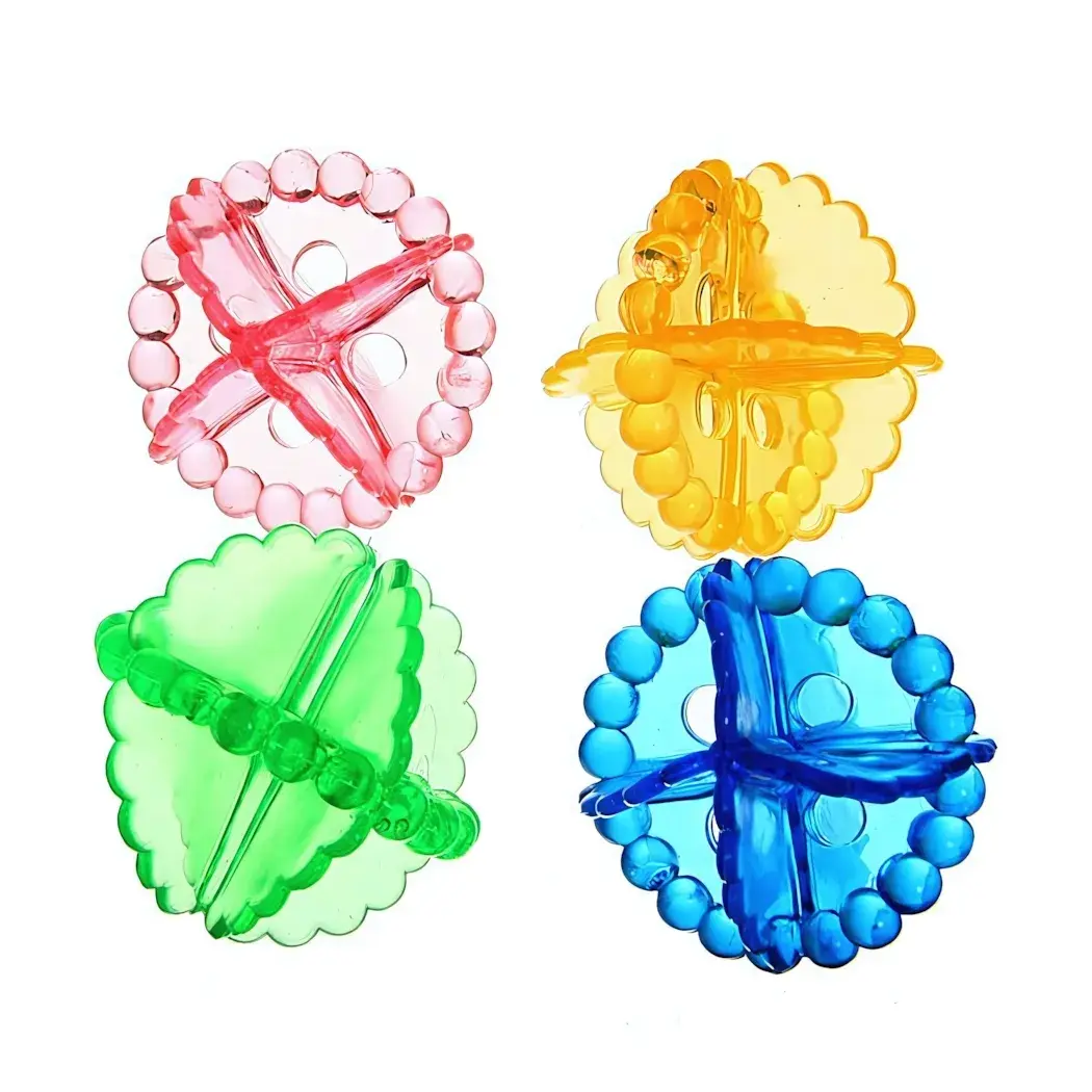 В комплекте — 4 мячика, каждый диаметром 5см. Изготовлены из гибкого пвх, что делает их долговечными и мягкими. Яркие цвета и оригинальная форма добавят визуальное разнообразие стирке. Подходят для белья, одежды, полотенец и детских вещей.