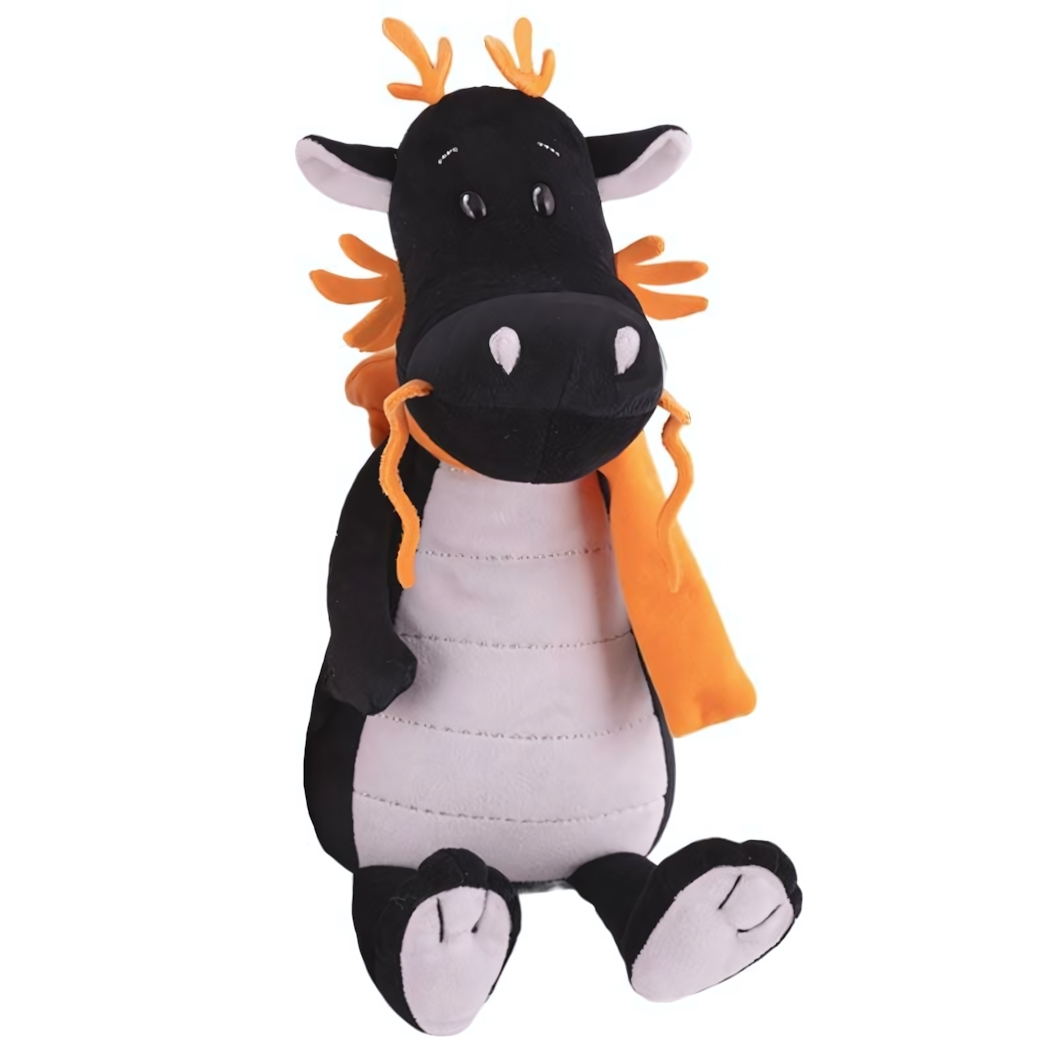 Эта мягкая игрушка не просто забавный аксессуар, а настоящий друг, который согреет вас в холодные дни. Дракон Шаолинь выполнен в черном цвете, который поглощает солнечные лучи, а значит, он будет дарить тепло вашим рукам. Оранжевые элементы и длинный шарф делают его не только стильным, но и ярким, что добавляет позитивного настроения в любую обстановку.