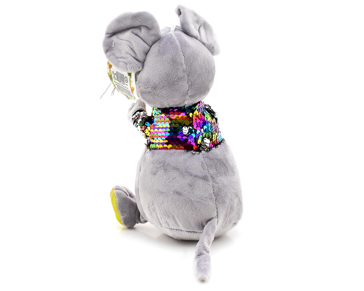 Эта мягкая игрушка в виде озорной мышки станет не только забавным другом для вашего малыша, но и прекрасным подарком на Новый год. Изготовленная из качественного текстиля, она обладает мягкой текстурой и приятна на ощупь. Мышка одета в яркую футболку из разноцветных пайеток, что придаёт ей особый шарм и привлекательность.