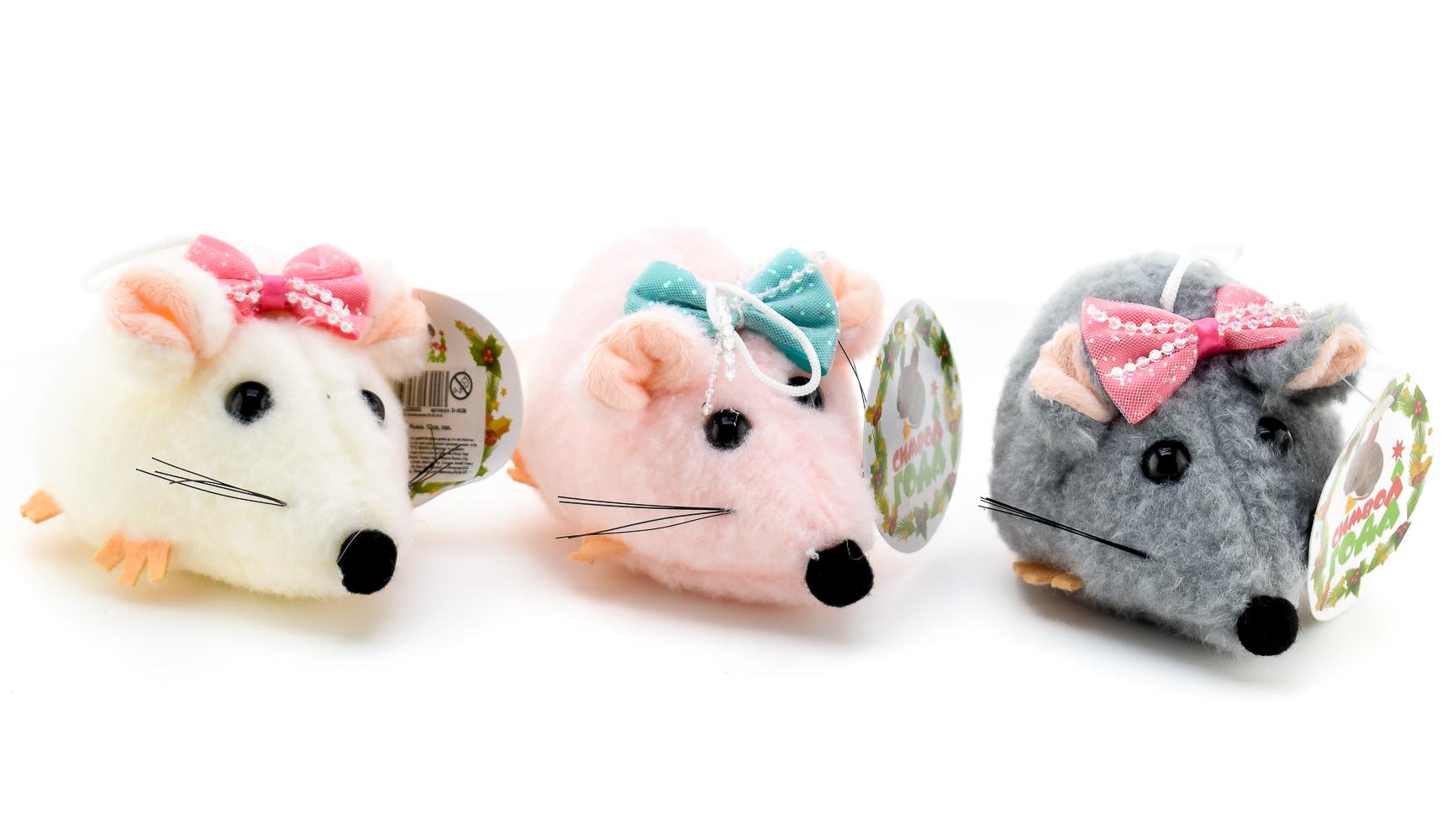 Мягкая игрушка мышь 13 см, текстиль, белая/розовая/серая с бантом, безопасная для детей