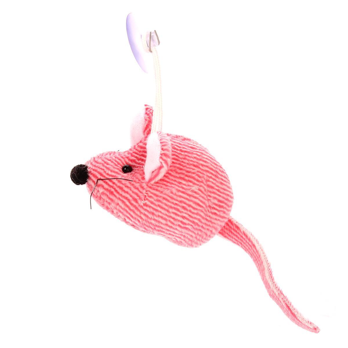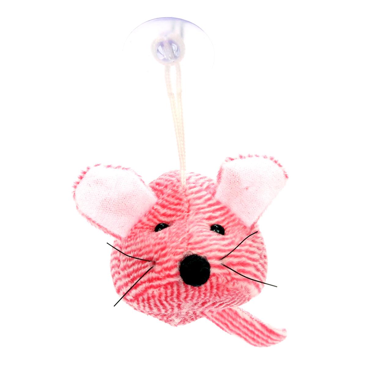 Мягкая игрушка мышь 6см, текстиль, розовая с белыми ушами, присоска для крепления