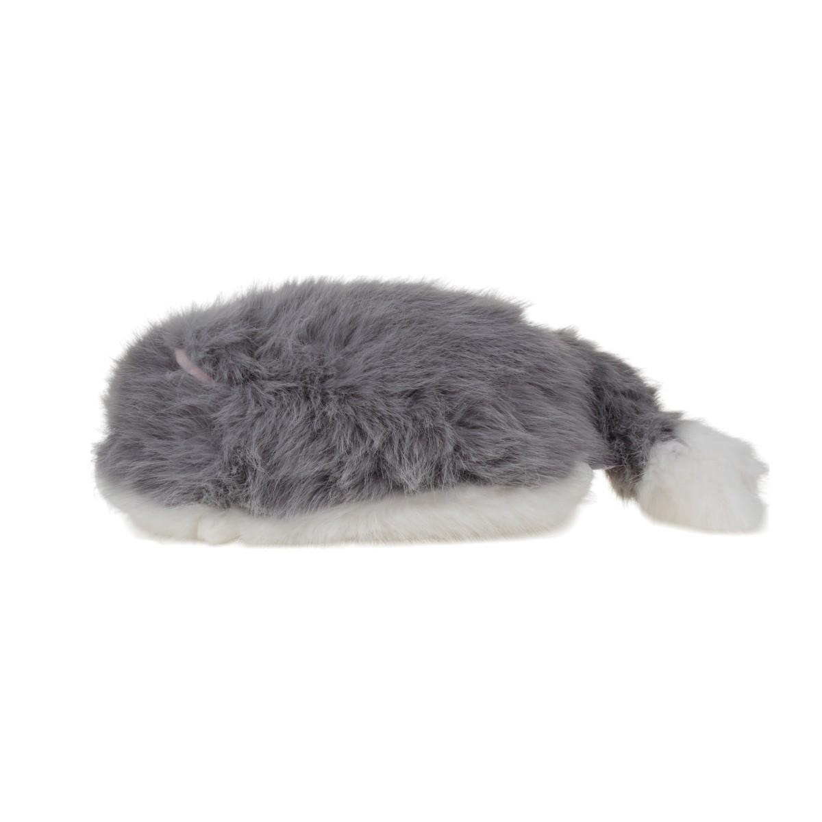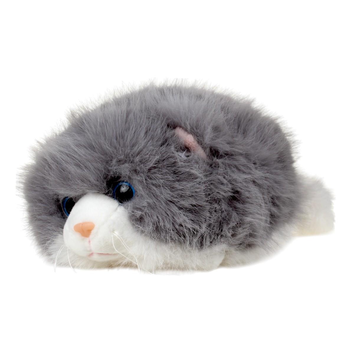 Серый цвет с бежевыми акцентами гармонирует с любым интерьером. Плотная набивка держит форму, но остаётся пластичной для объятий. Безопасные пластиковые глазки не отрываются при активном использовании. Рекомендована ручная стирка при 30°C для сохранения мягкости ворса.
