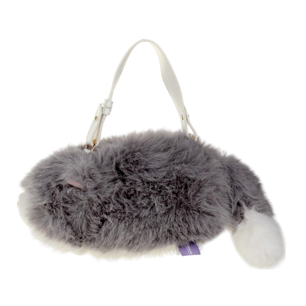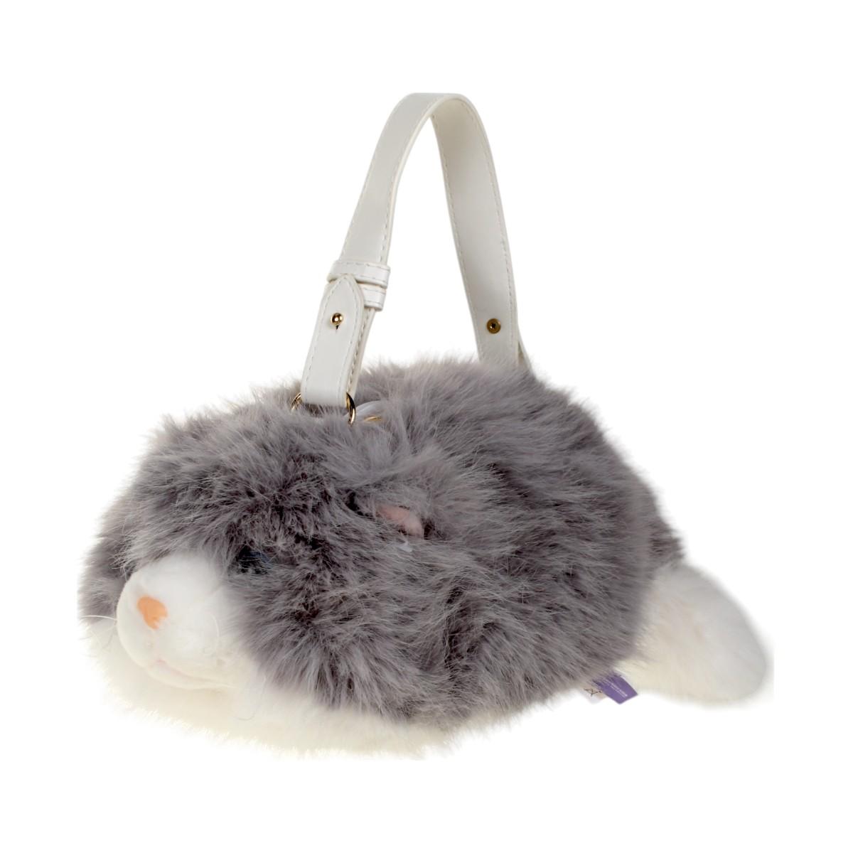 Сумка-игрушка "кошка" серая 30см, мягкий искусственный мех, с ручкой