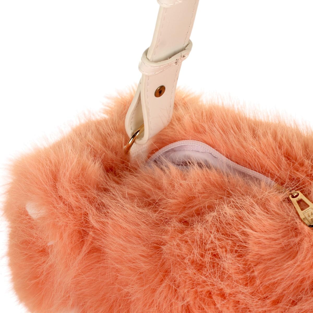 Сумка выполнена из мягкого материала, имитирующего мех, что делает ее приятной на ощупь. Она идеально подходит для детей любого возраста, а также может быть использована как стильный аксессуар для подростков. Сумка имеет короткую ручку, что позволяет удобно носить ее с собой. Внутренний карман на молнии обеспечивает безопасность хранения мелочей.