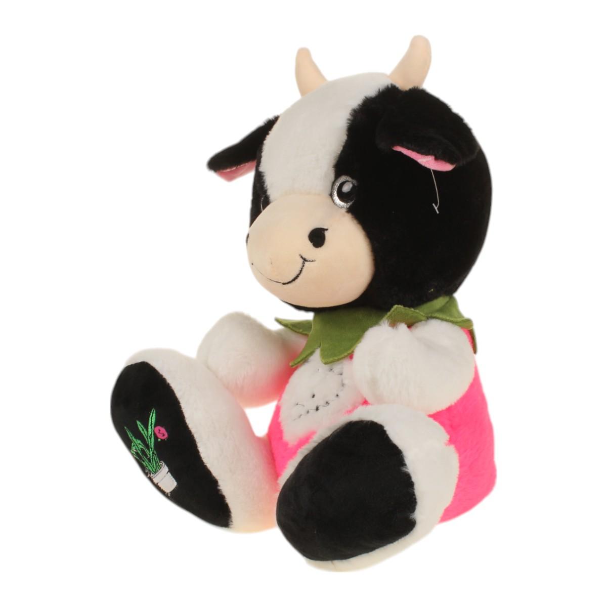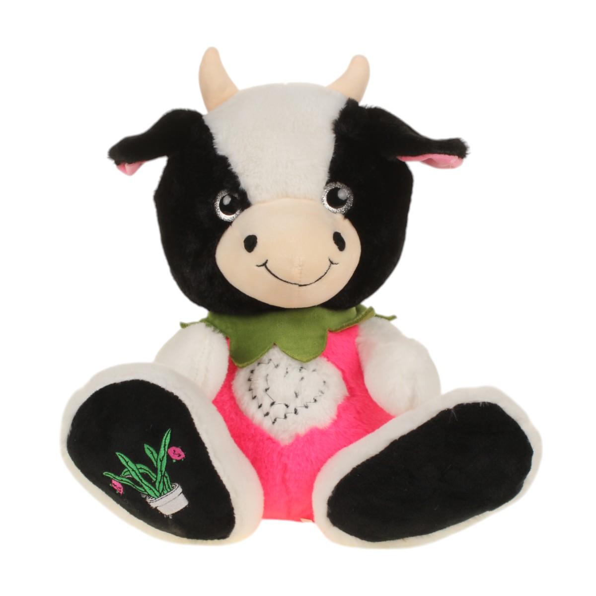 Мягкая игрушка «Символ Года», телёнок 40 см, черно-белый с розовым животом и бантом