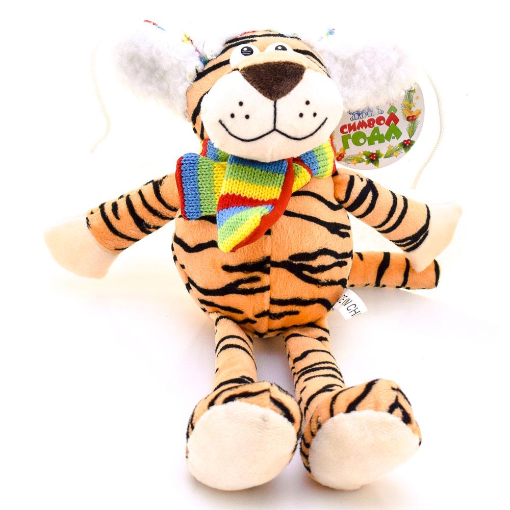 Мягкая игрушка «Символ года»: тигр 25 см, текстиль, оранжевый с полосками, с шарфом